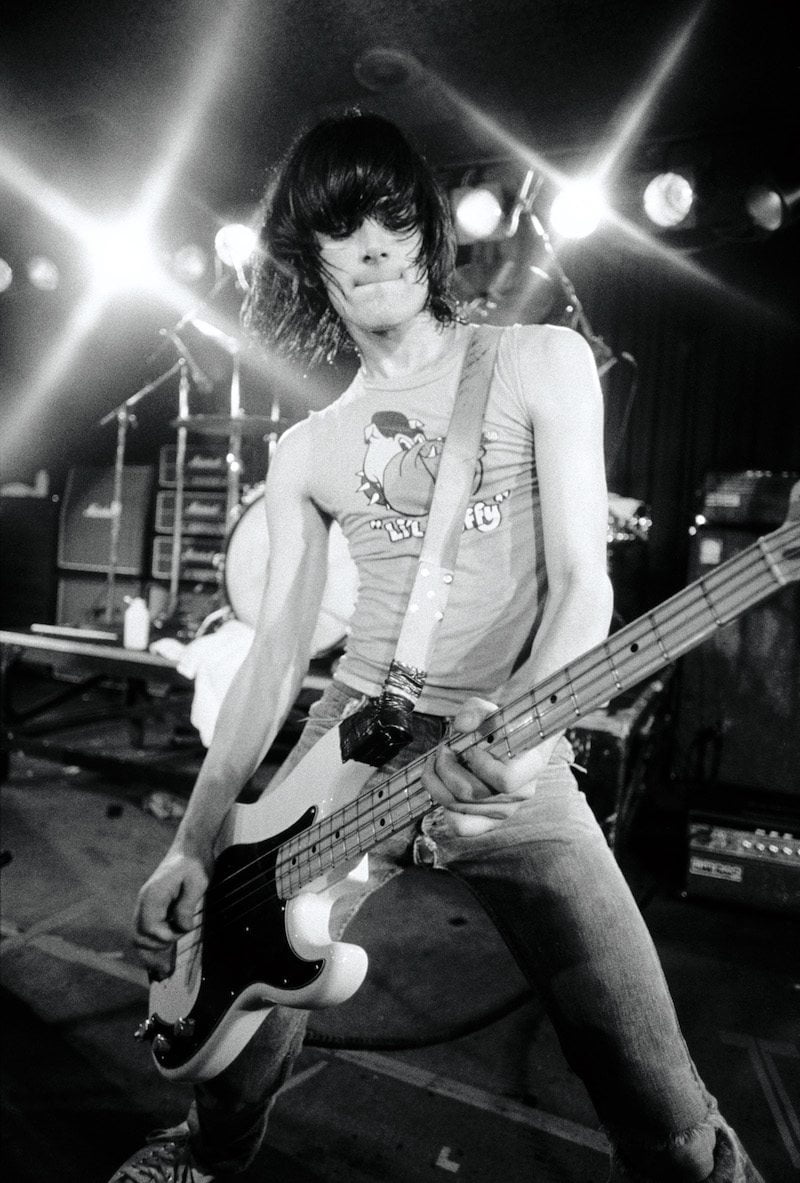 Plus, need we neglect, Dee Dee’s musicianship duly inspired all the coolest Fender far-from-Precision bassmen of the time, from Sid Vicious all the way on down to my fellow budding Canadian pop scribe B. F. “Mole” Mowat (then skipping high school whenever possible to swing the bottom end for a dorky ELO / Alice Cooper cover band). Why, even acclaimed Demolition Stringer Elena Skye, never once loathe to draw that simple pedal-to-the-floor connection between P-rock and B-grass, admits to being “warped for life” after having first encountered the Ramones during her most impressionable dorm years: “I immediately cut my hair like Dee Dee’s, with the bangs and all. I put my mandolin away, bought a black Rickenbacker with black and white checker binding, lowered the strap so it hit my knees and didn’t look back for about twelve years!” But don’t just take it from these good folk: “I believe Dee Dee has influenced every kid playing bass that saw him perform,” as no less an expert on the subject as Johnny Ramone stated for the obitual record.