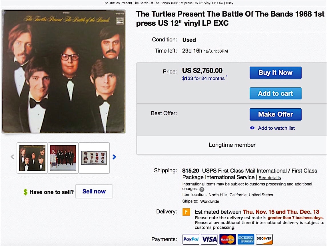 I mean, just take a look at the inner cover of the Turtles’ stunning 1968 Battle Of The Bands: Therein stand not one, not two, but TWELVE different mock-“Turtles” (one for each song), each posed in an absolutely flawless visual parody of – or was it a tribute to? – one dozen different rock-and-pop pigeonholes.